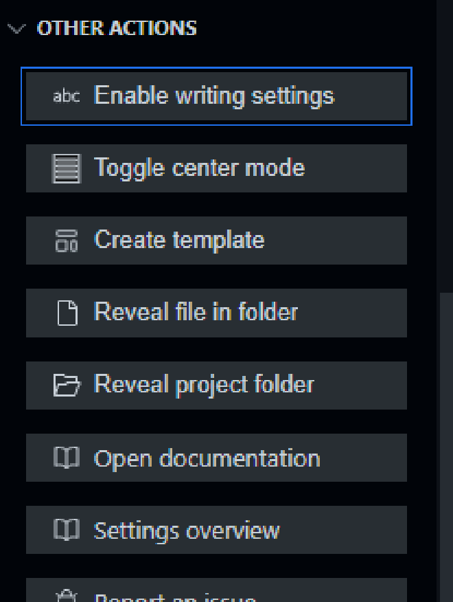 • 选择左侧侧边栏的Enable writing setting 可以优化编辑界面