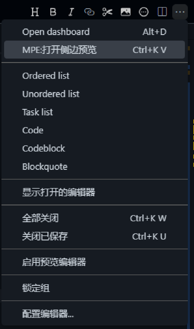 • 点击右侧三个点下拉菜单中的MPE:打开侧边预览可以实时渲染