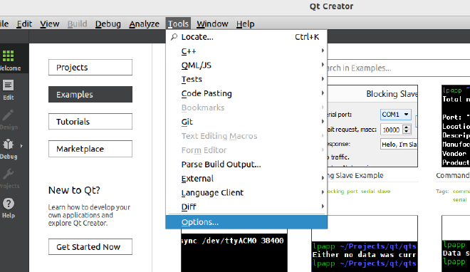 打开QT Creator,点击“Tools -> Options”。