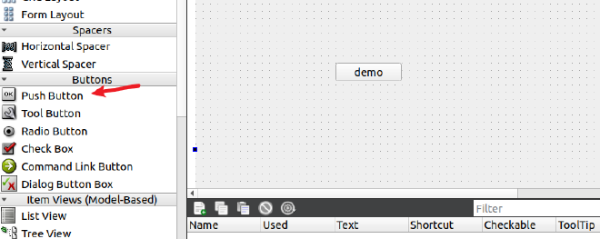 托拽一个Push Button 到主界面中。