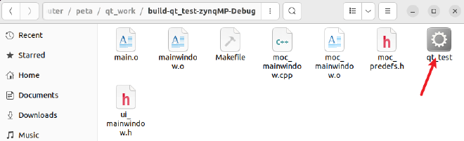 在build-qt_test-ZYNQMP-Debug 目录可以看到生成了一个qt_test的文件,返个文件要在是板卡上运行。